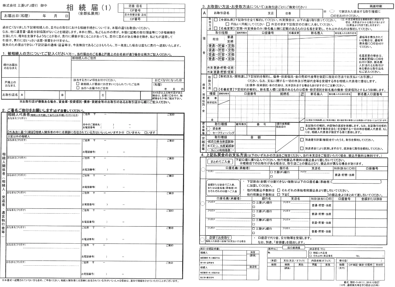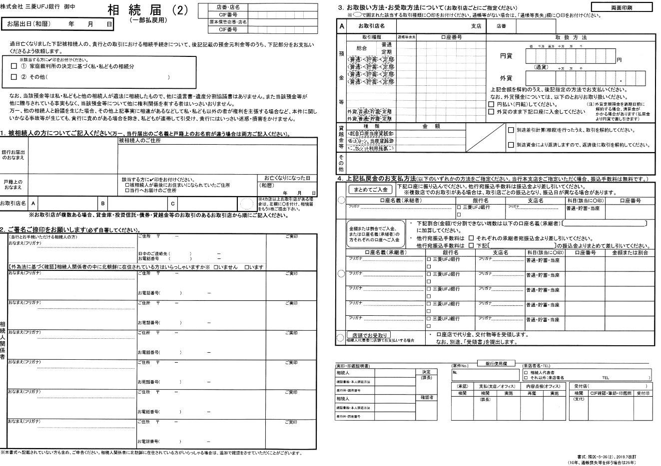 三菱UFJ銀行所定の「相続届」を窓口などで入手します。
