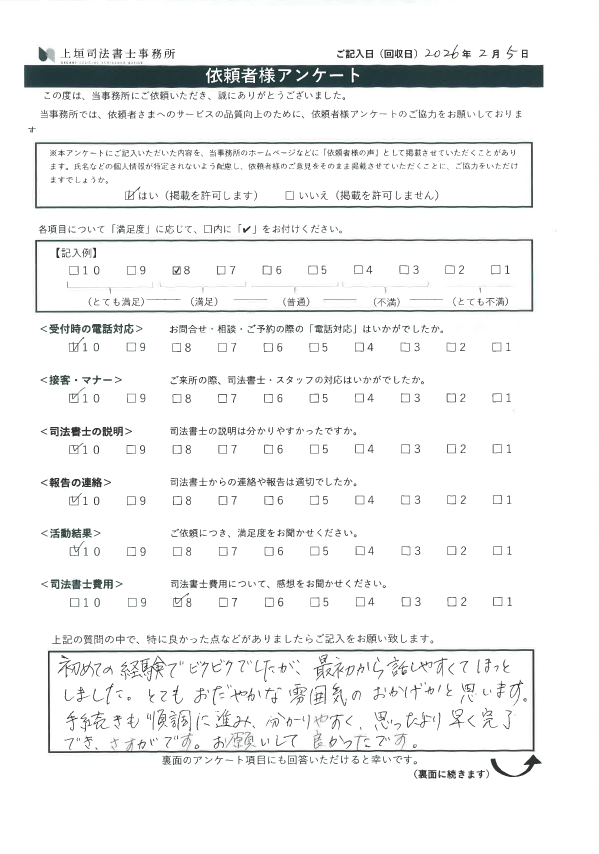 手続きも順調に進み、分かりやすく、思ったより早く完了でき、さすがです。